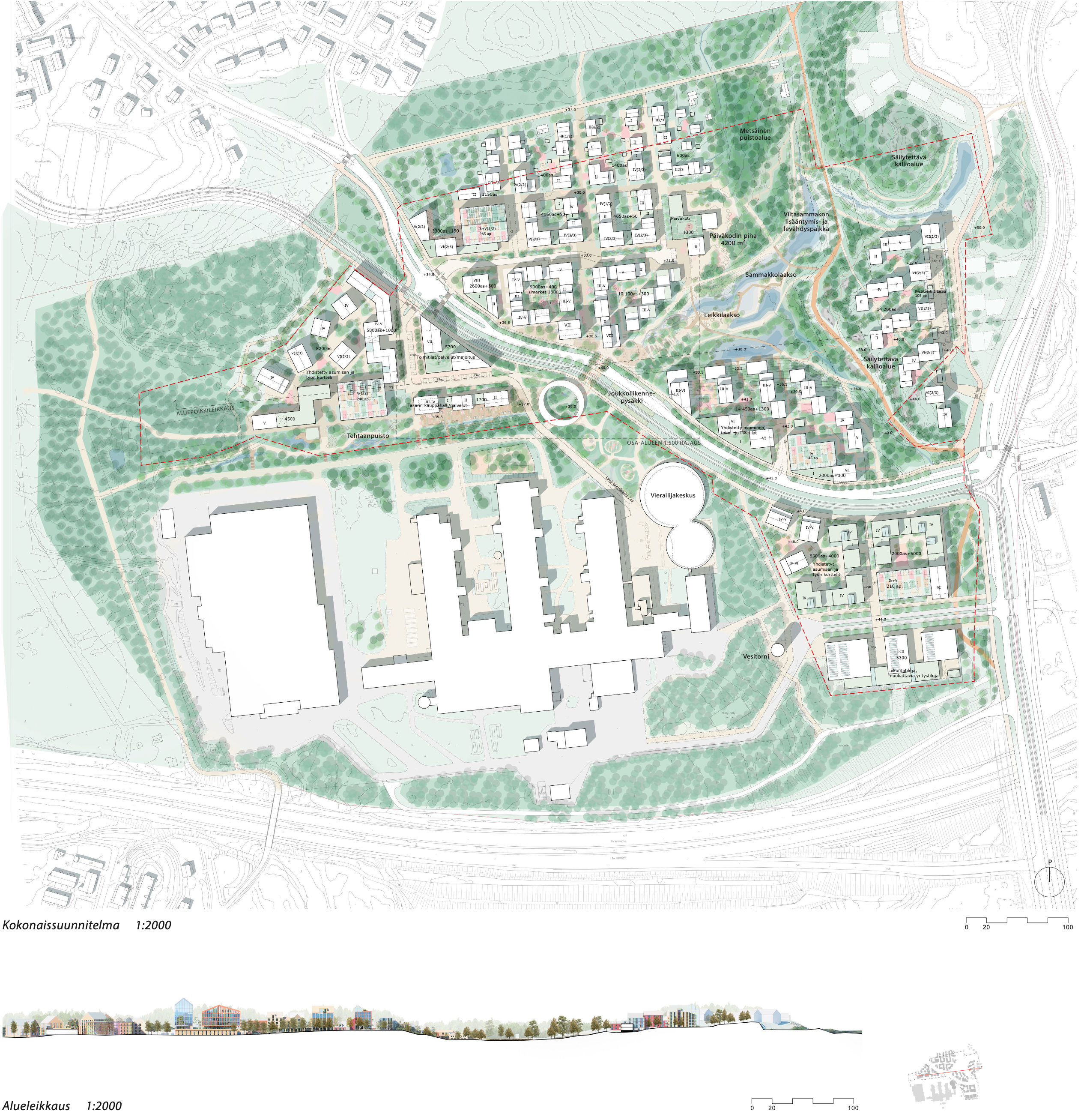 According to the jury, Avec is a proposal of unique urban appearance, with a successful solution for the green area network. In connection with the habitat of the moor frog, there’s a green heart with sufficient green connections in different directions. The well-designed Tehtaanpuisto (factory park) between the factory and residential area received special praise. According to the evaluation minutes, the proposal utilises the area’s landscape as a starting point and the green areas have been developed in diverse ways.