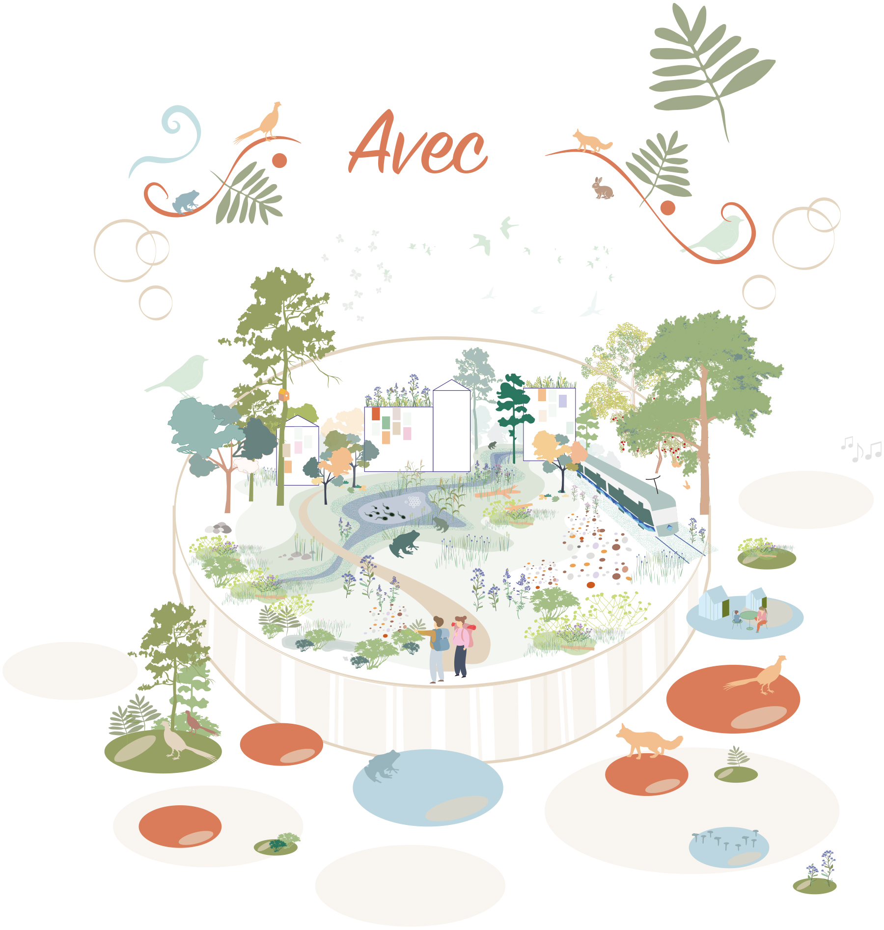 Avecin visiona on Fazerilan ja Santamalmin tulevaisuus hyvänmakuisena ja rentona kaupunginosana, jossa Fazerin tehdasperintö ja Santamalmin hiekkaharjut ihmistoiminnan tuottamine muutoksineen liitetään elämyksellisesti uuteen asuinympäristöön. Monimuotoisten puistoalueiden siniviherverkosto on uuden ratikkakaupungin selkäranka. Viitasammakon (Rana arvalis) elinympäristöt säilytetään ja niitä monipuolistetaan osana Sammakkolaakson seikkailullista puistokokonaisuutta. Avecissa runsas ja vehreä kasvillisuus saa parikseen karkkimaailman muodot ja värit.