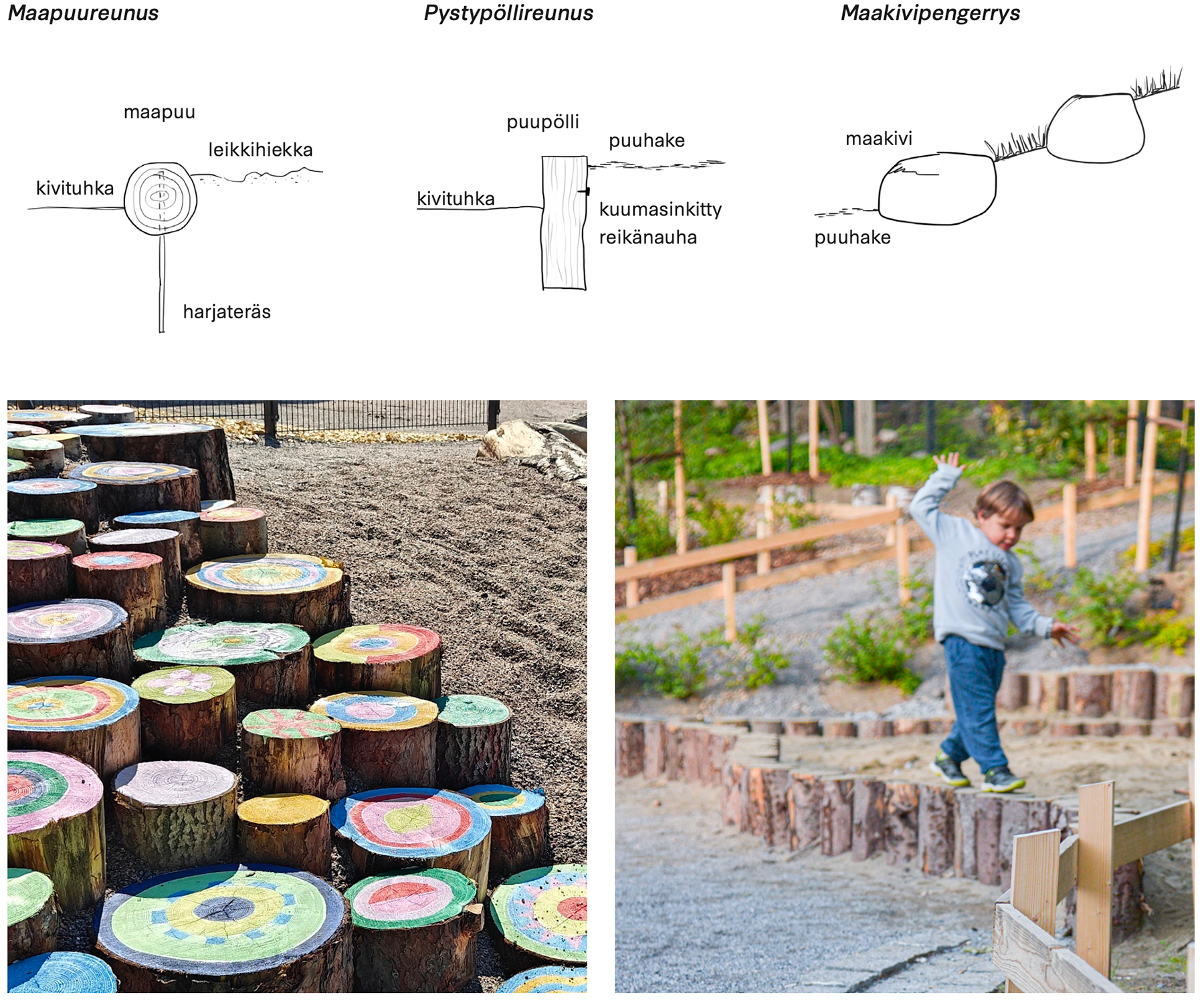 Leikkihabitaatit; yllä koulun piha, alla koulukatu